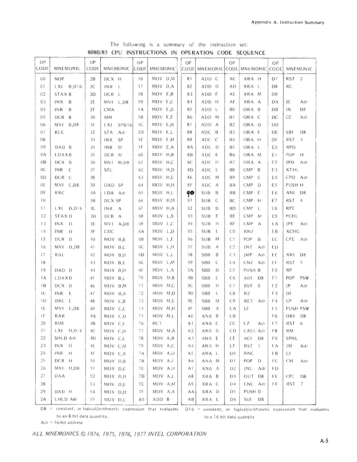 INSTRUCTIONS IN OPERATION CODE SEQUENCE