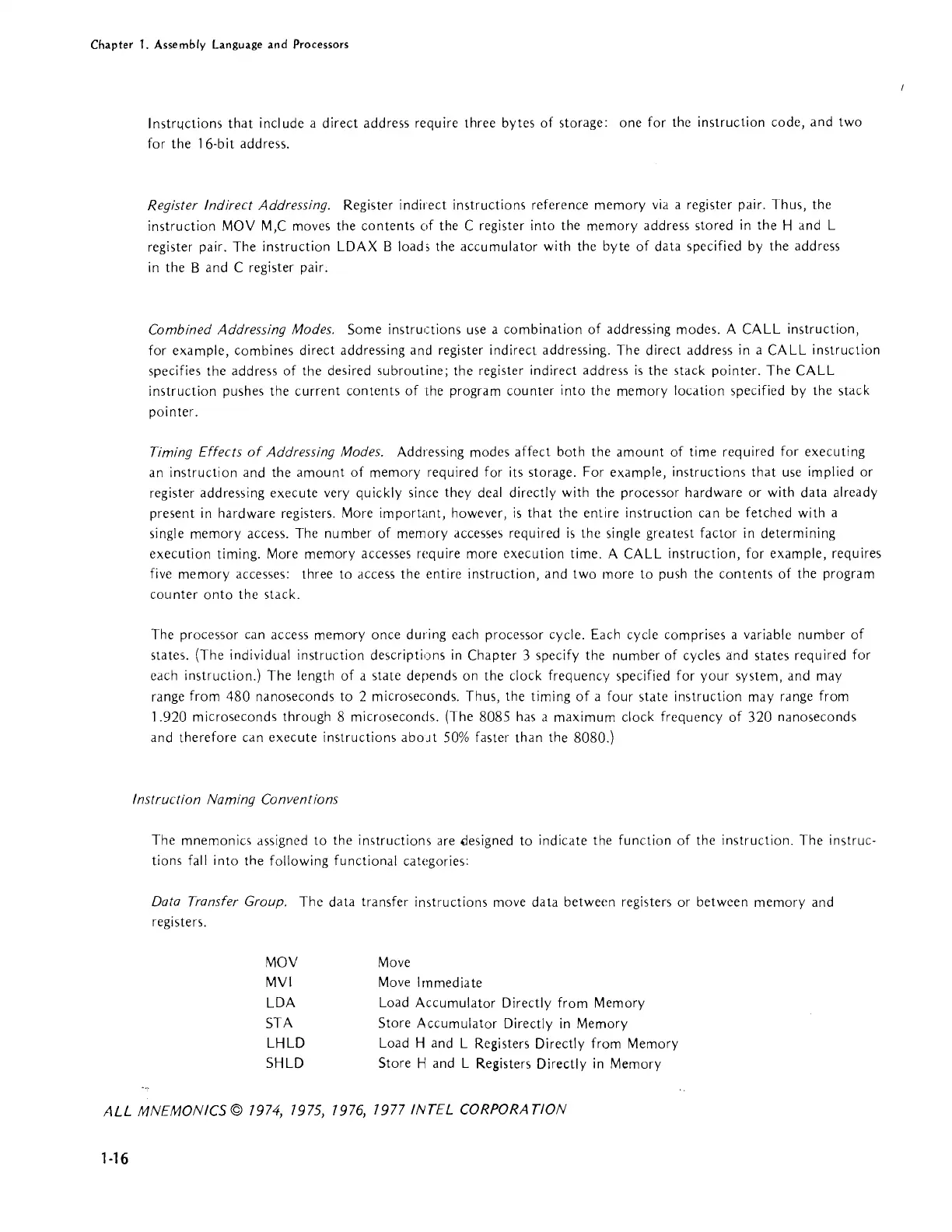 MNEMONICS © 7974, 7975, 7976, 7977 INTEL CORPORA