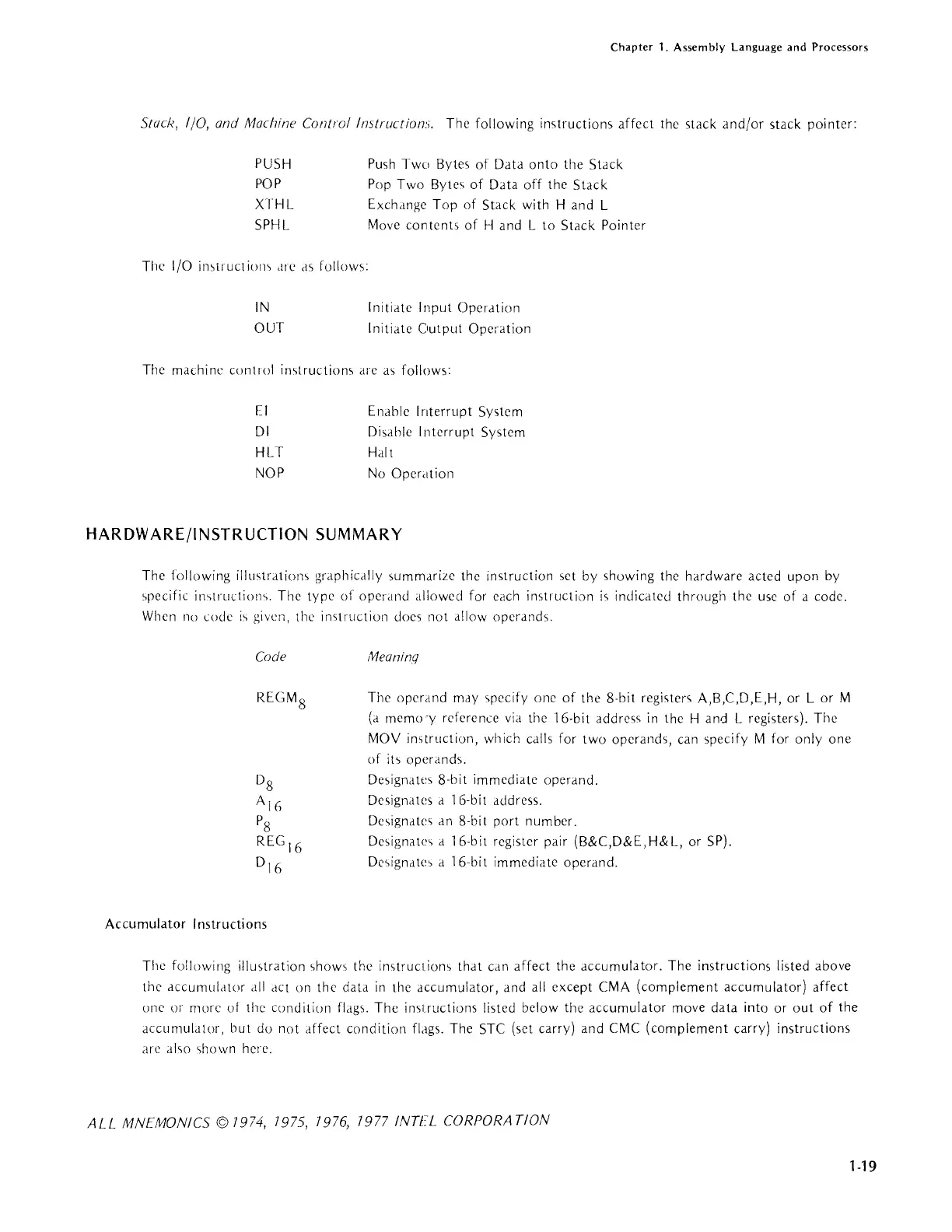 MNEMONICS © 7974, 7975, 7976, 7977 INTEL CORPORA TlON