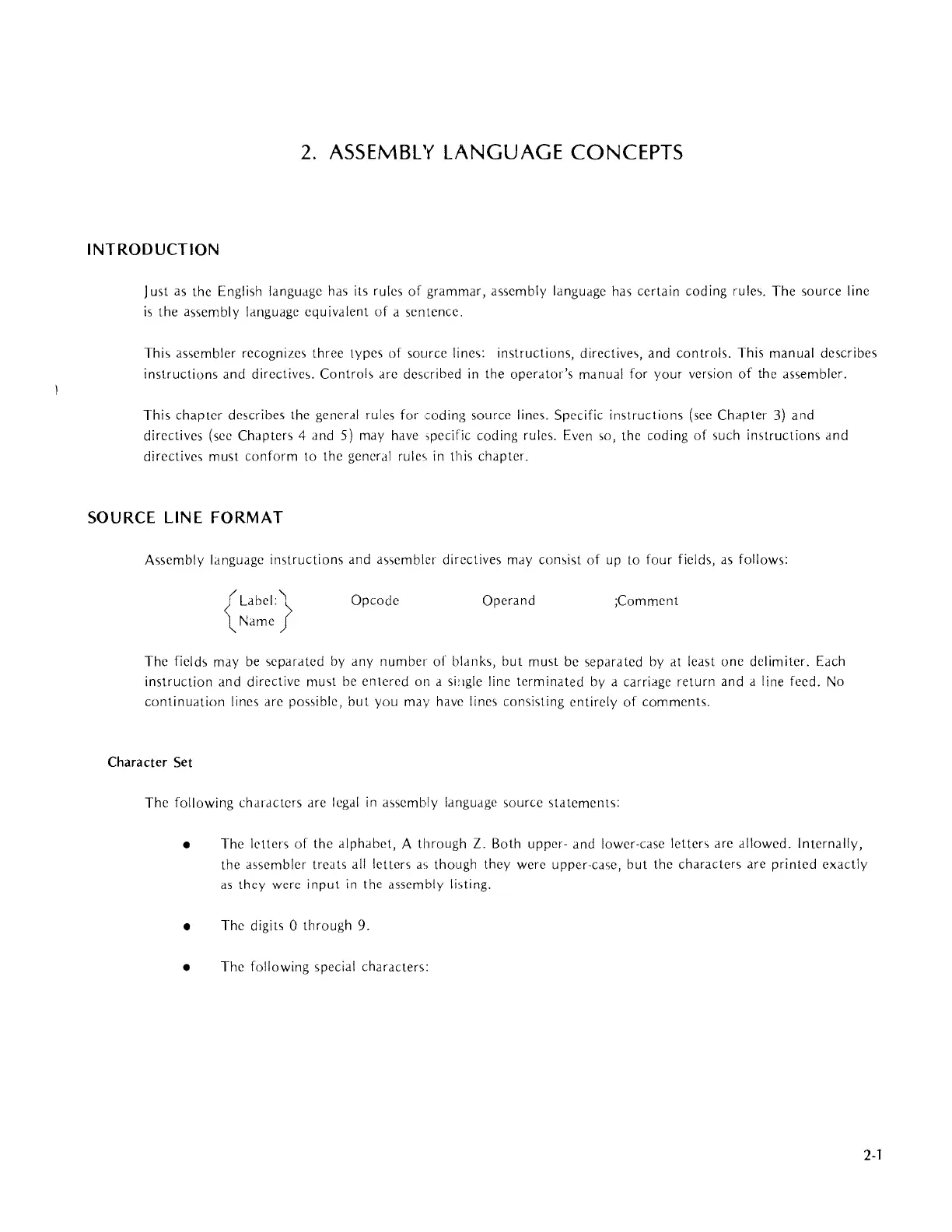 generdl rules for coding source lines. Specific instructions (see Chapter
