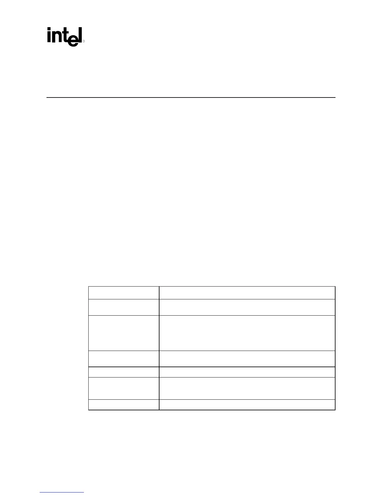 Each table describes one of those portions and is titled accordingly. Contact your Intel Field