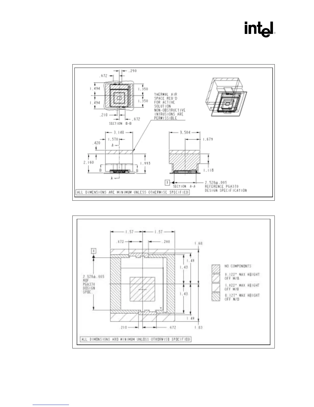 Intel 815 - Figure 31. Heatsink Volumetric Keepout Regions; Figure 32. Motherboard Component Keepout Regions