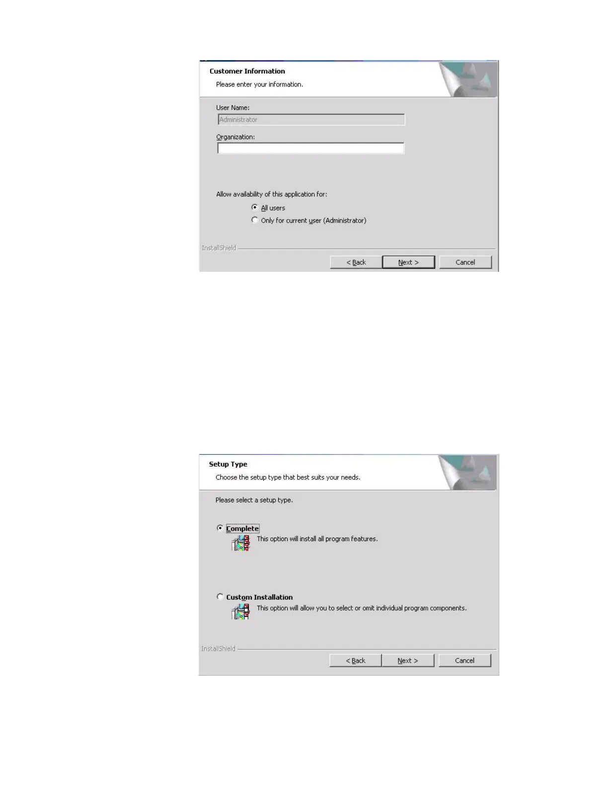 4. Enter your user name and organization name. At the bottom of the screen, select an