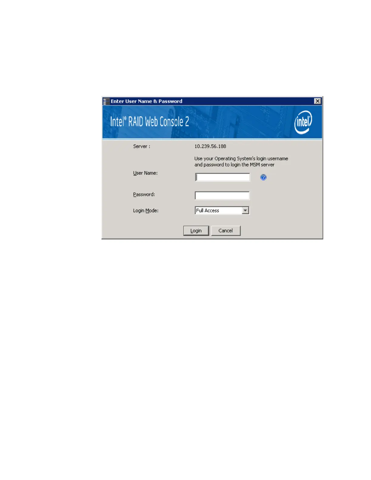RAID Web Console 2 uses the username and password of your server operating system. In