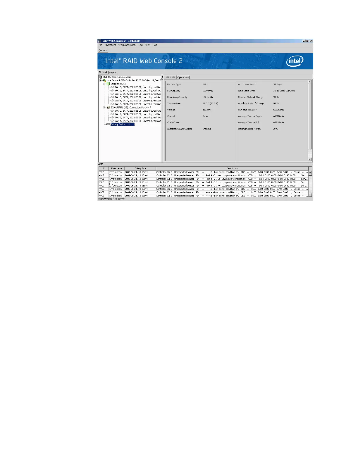 Figure 86. Battery Backup Unit Information