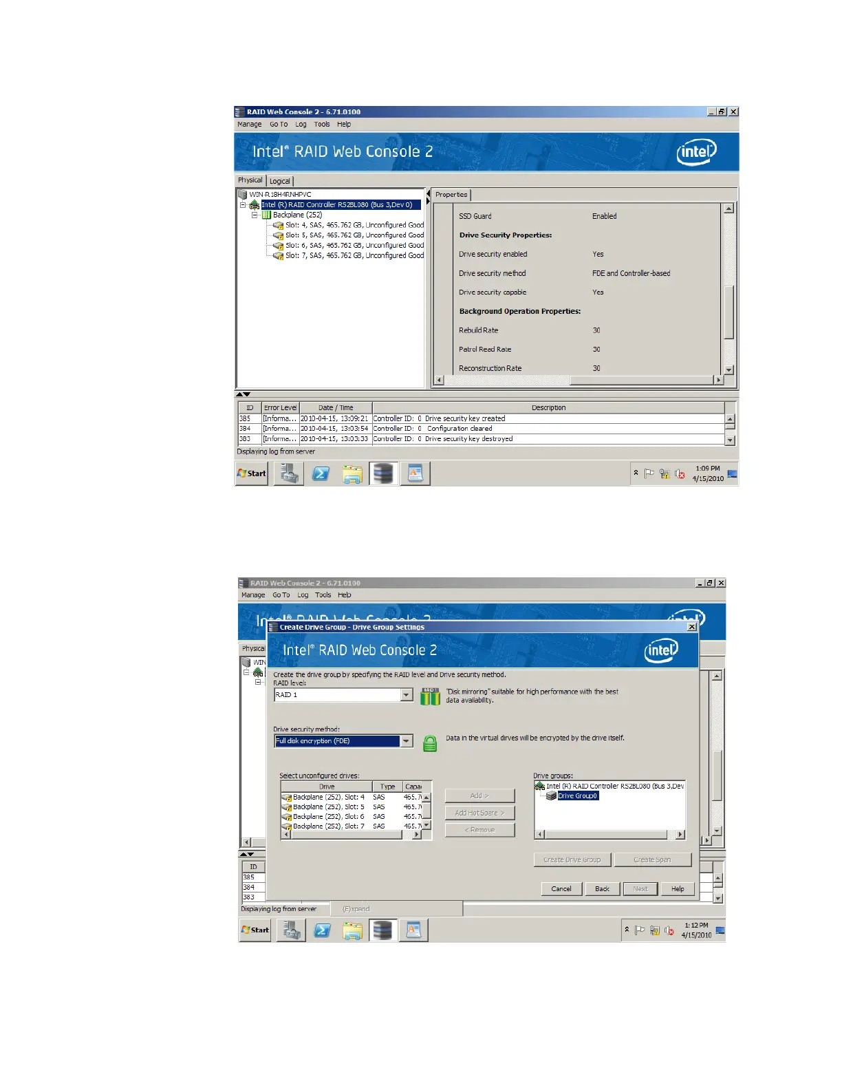 Intel AFCSASRISER - Figure 101. Check Drive Security Enabled Status; Figure 102. Select Full Disk Encryption