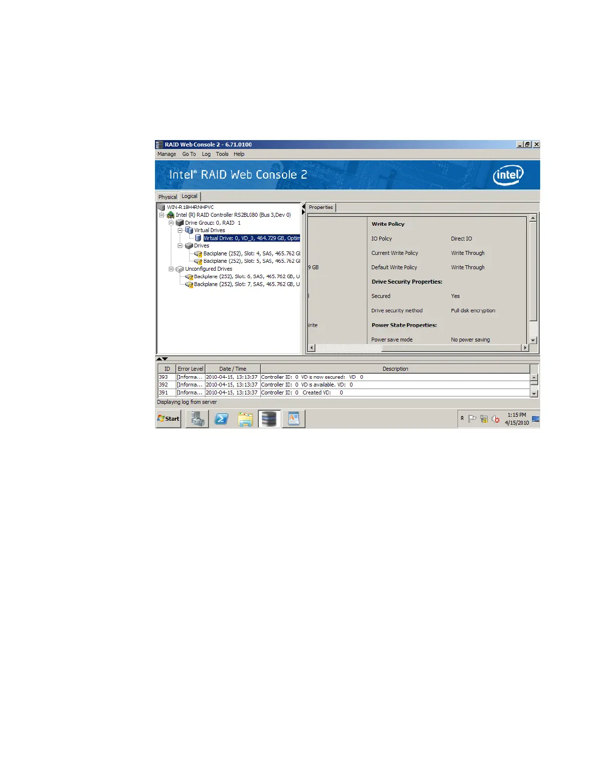 Selecting this virtual drive in left panel shows its secured status and Drive security
