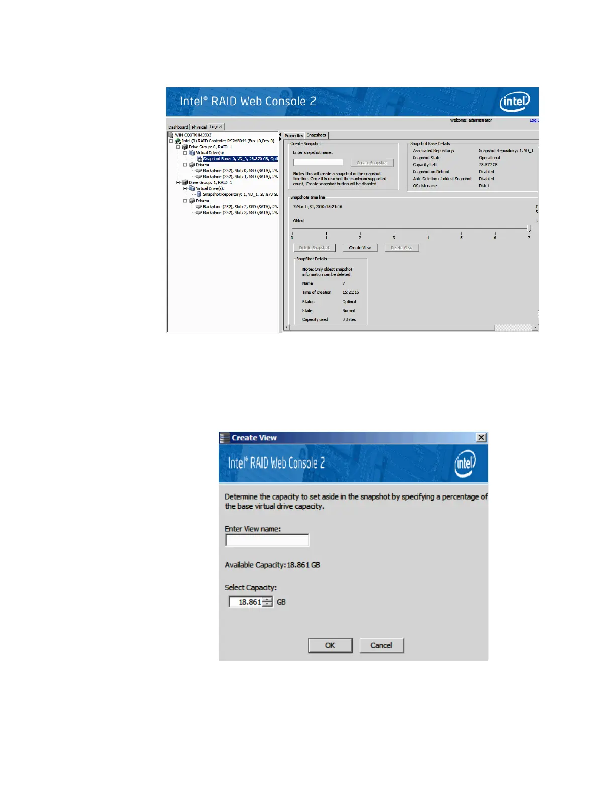 MegaRAID Recovery Views based on snapshots created previously, and can roll back