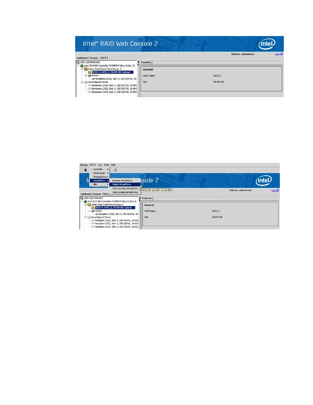 6. Following steps delete a Super Sized Cache disk: