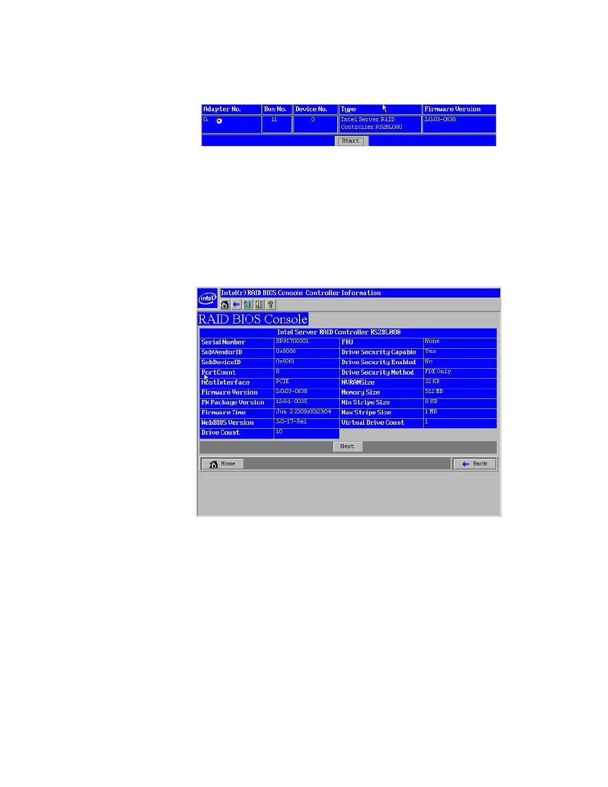 Console 2 utility displays a list of the Intel RAID controllers in the system.