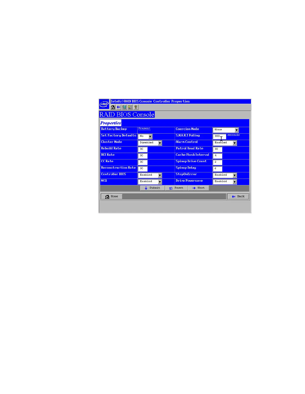 • Set Factory Defaults: Change this field to Ye s to reset the RAID controller settings to