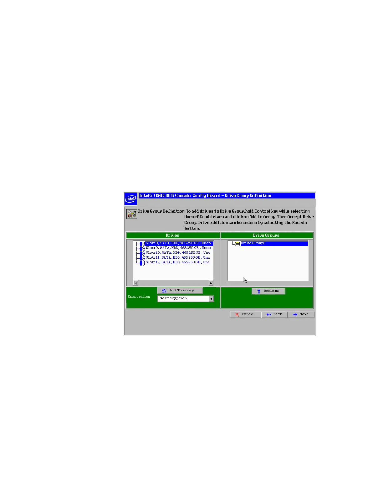 RAID BIOS Console 2 - Add Physical Drives to Array