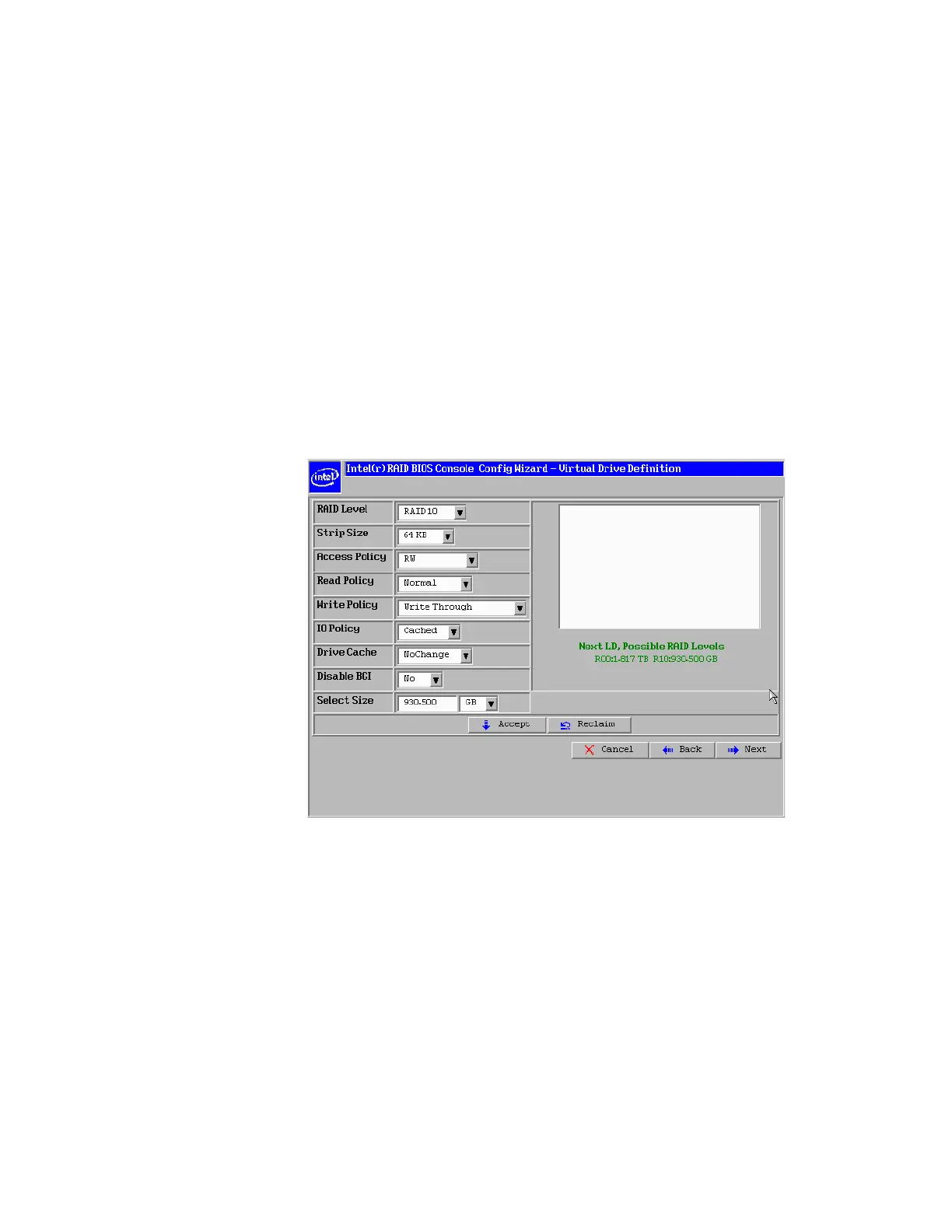 13. Set the drive size to a number in MB that is a size greater then the size of the RAID 1,