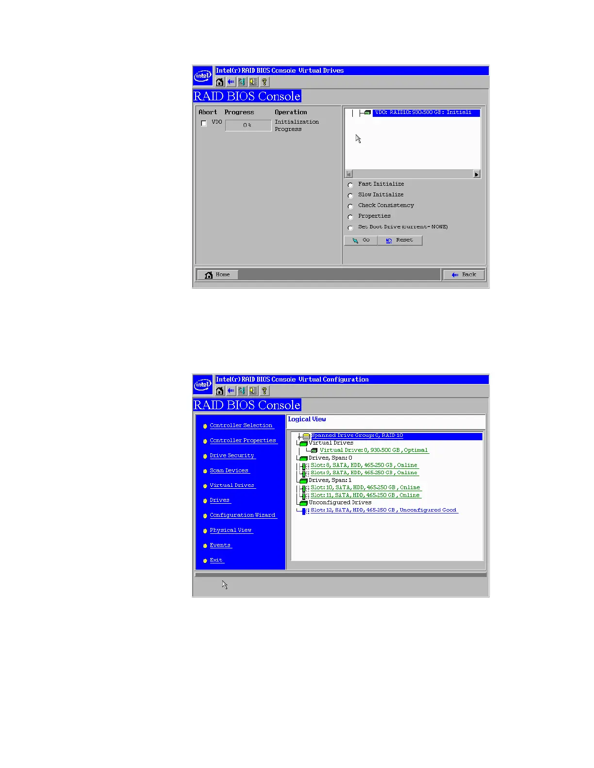 The RAID 10, RAID 50, or RAID 60 virtual drives are displayed. The following figure