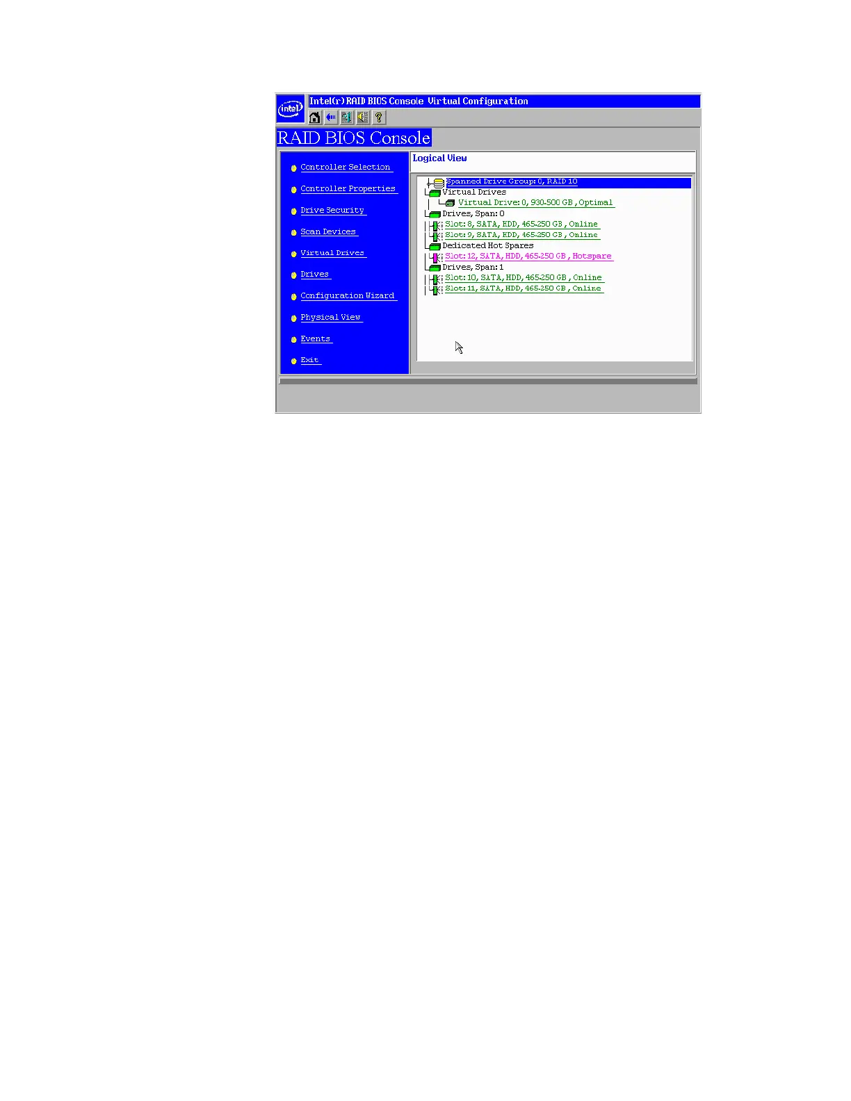 Intel AFCSASRISER - Figure 36. Intel RAID BIOS Console 2 - Main Screen Showing Hot Spare Drive