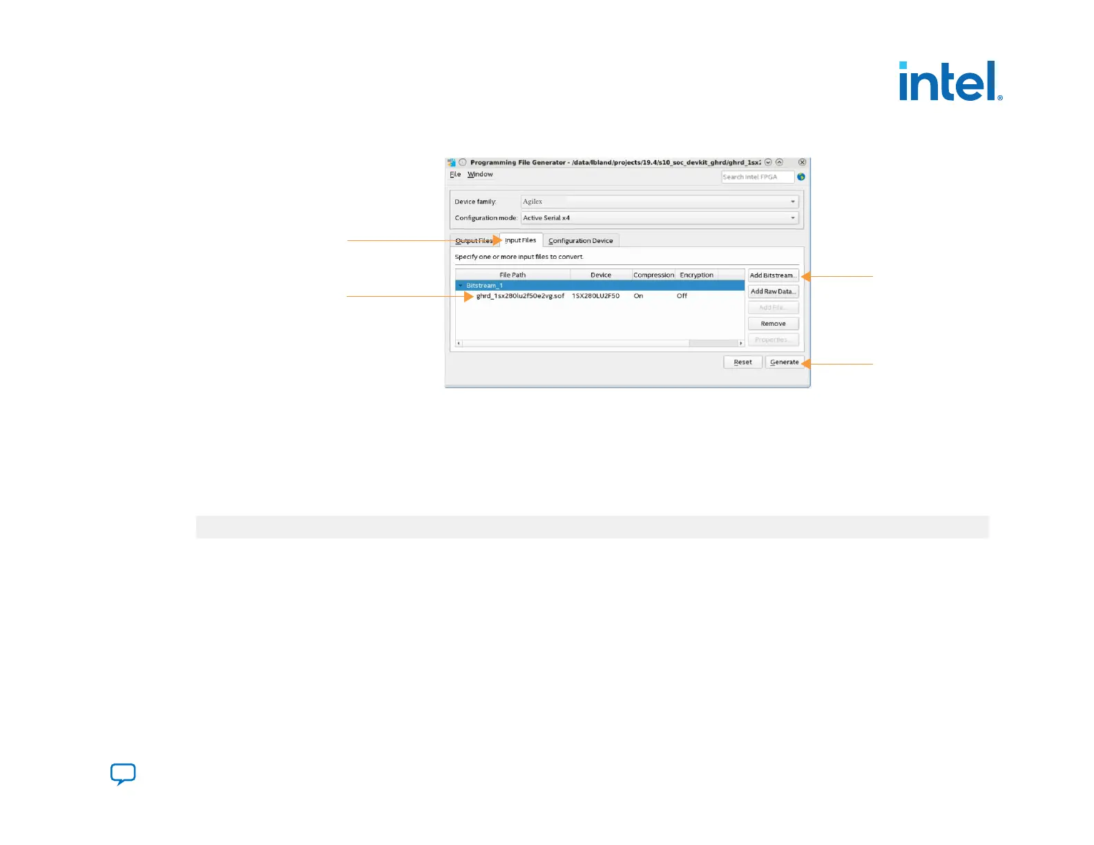 Alternatively, you can use the Intel Quartus Prime Pro Edition Programming File Generator to generate a factory update