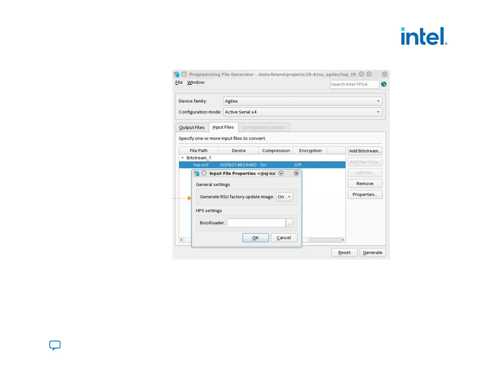 10. Click Generate to generate the RSU programming files. You can now update the Intel Agilex firmware. You can save the