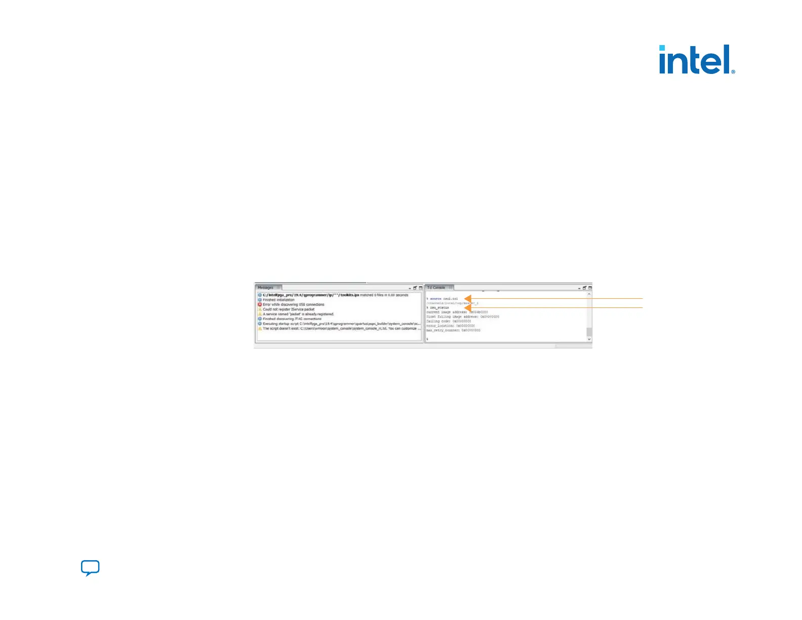 a. For example, in the Tcl console of the System Console, type the following command to initiate a remote system