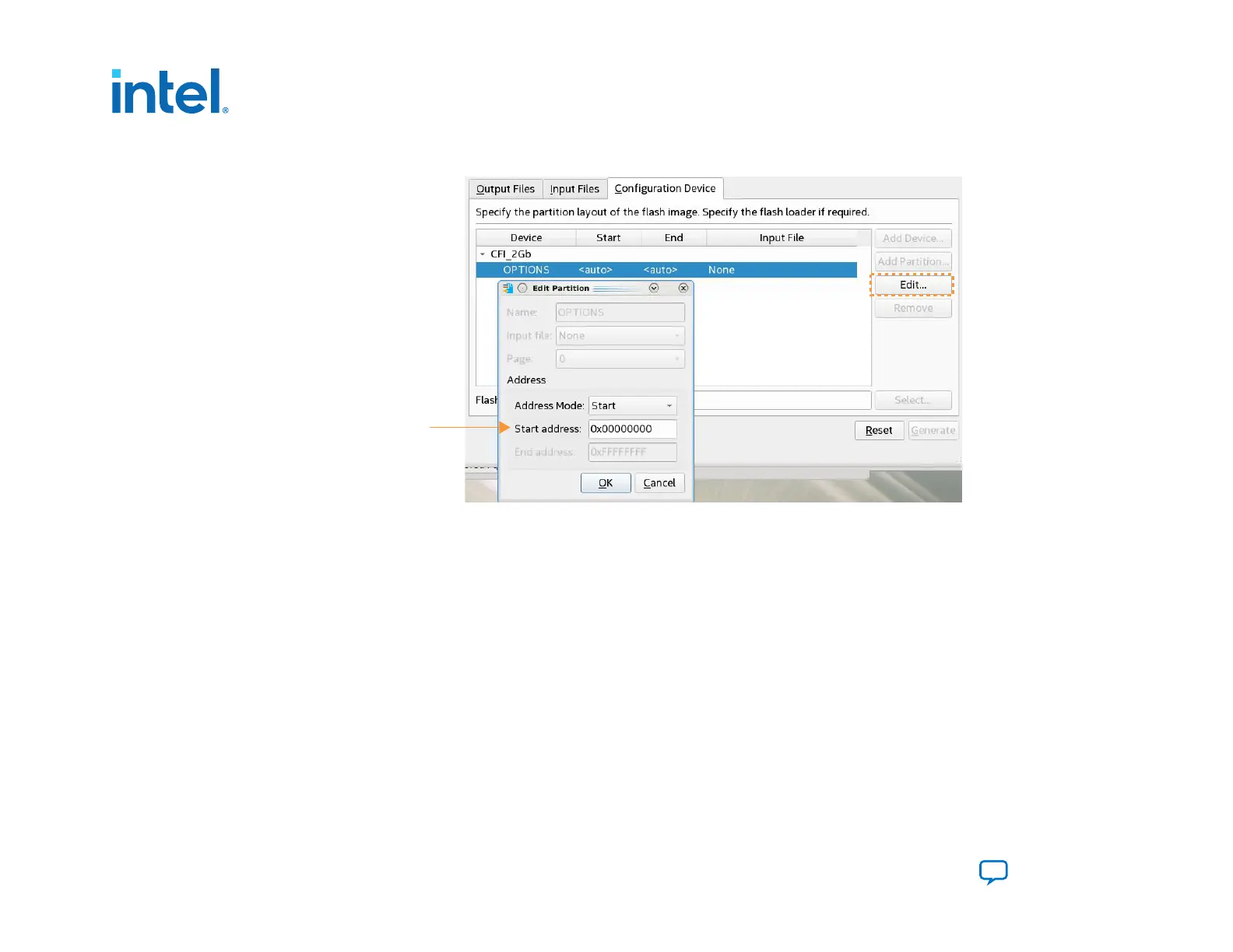 12. With the flash device selected, click Add Partition to specify a partition in flash memory.