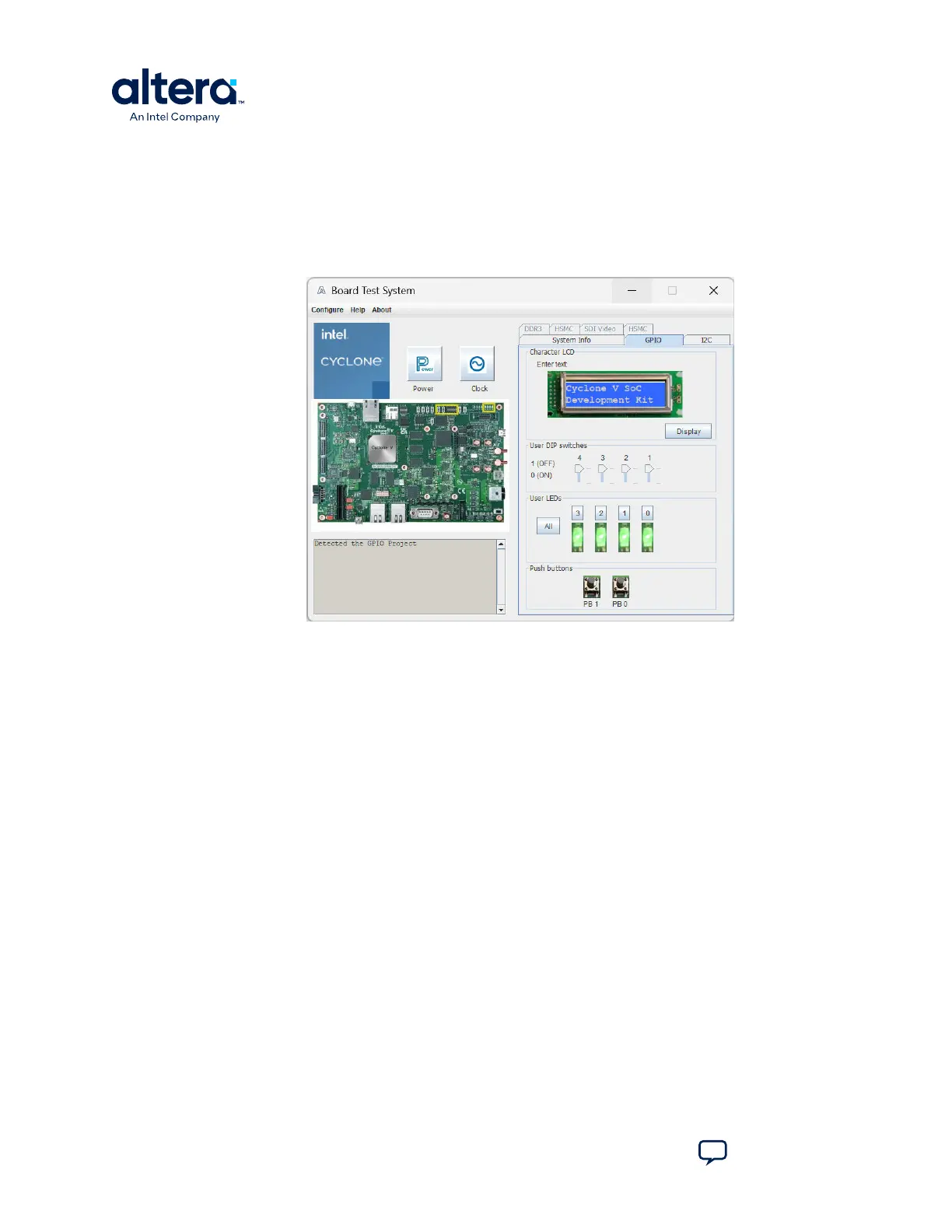 The GPIO tab allows you to interact with all the general-purpose user I/O components