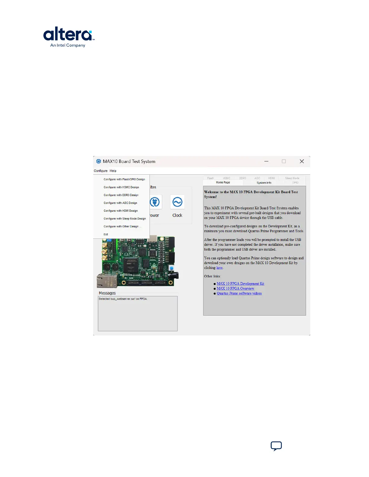 If you use the Quartus Prime Programmer for configuration, rather than the Board Test