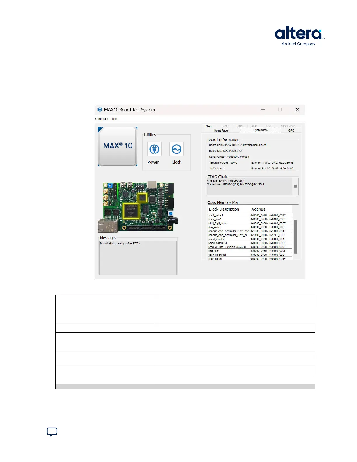 JTAG chain, the board’s MAC address, the Qsys memory map, and other details stored
