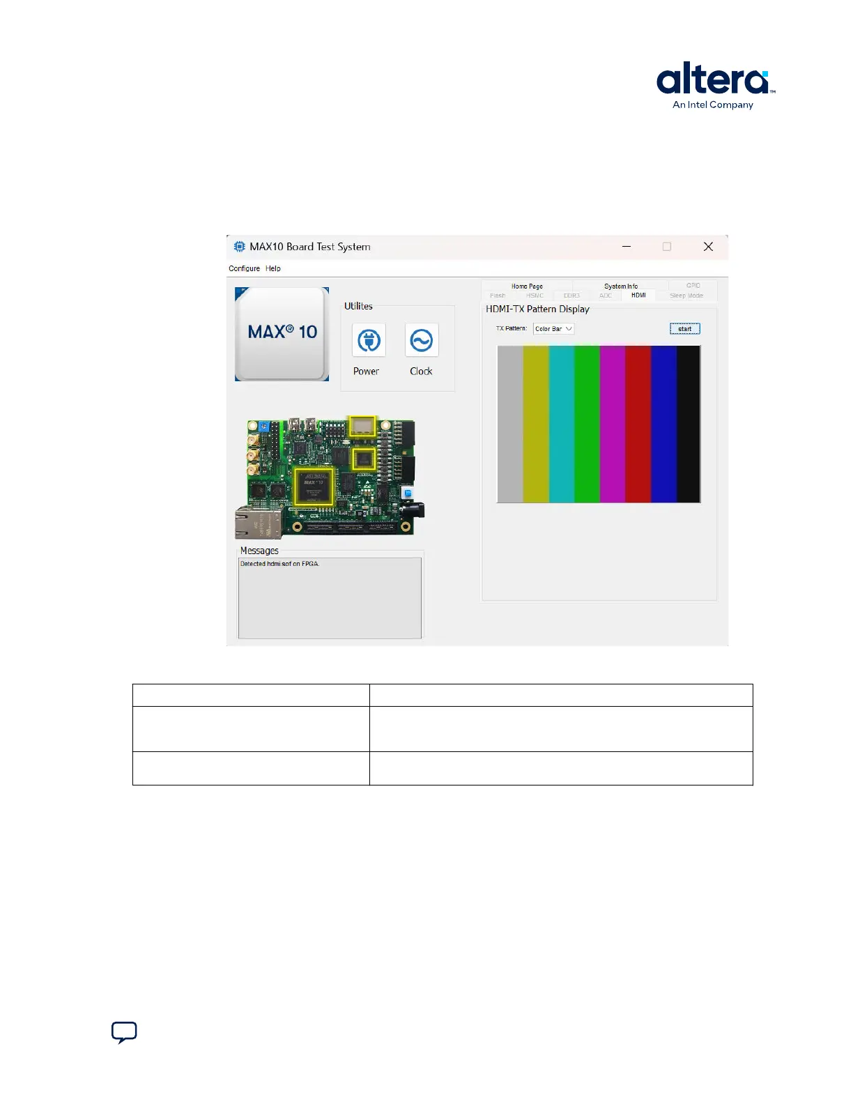 Start When you click this button, the selected TX pattern (from Color Bar)