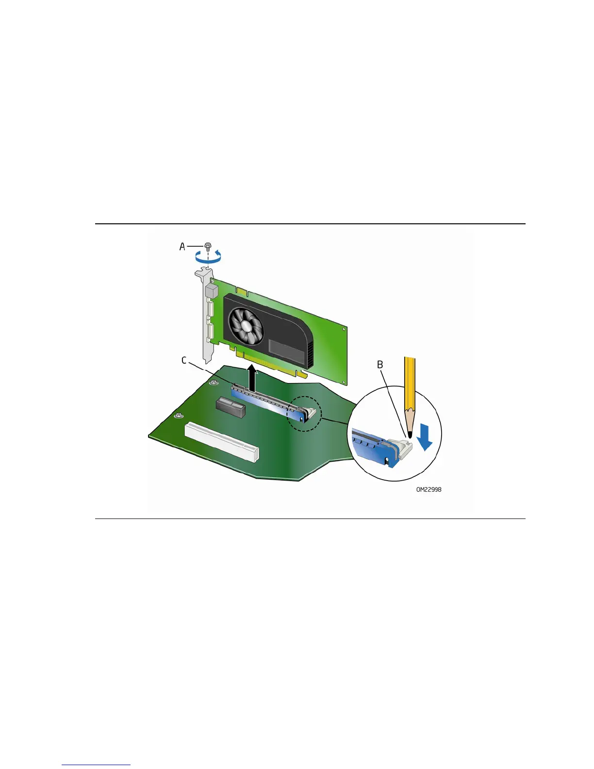 (Figure 16, B) in the notch. This will release the card from the connector (C).