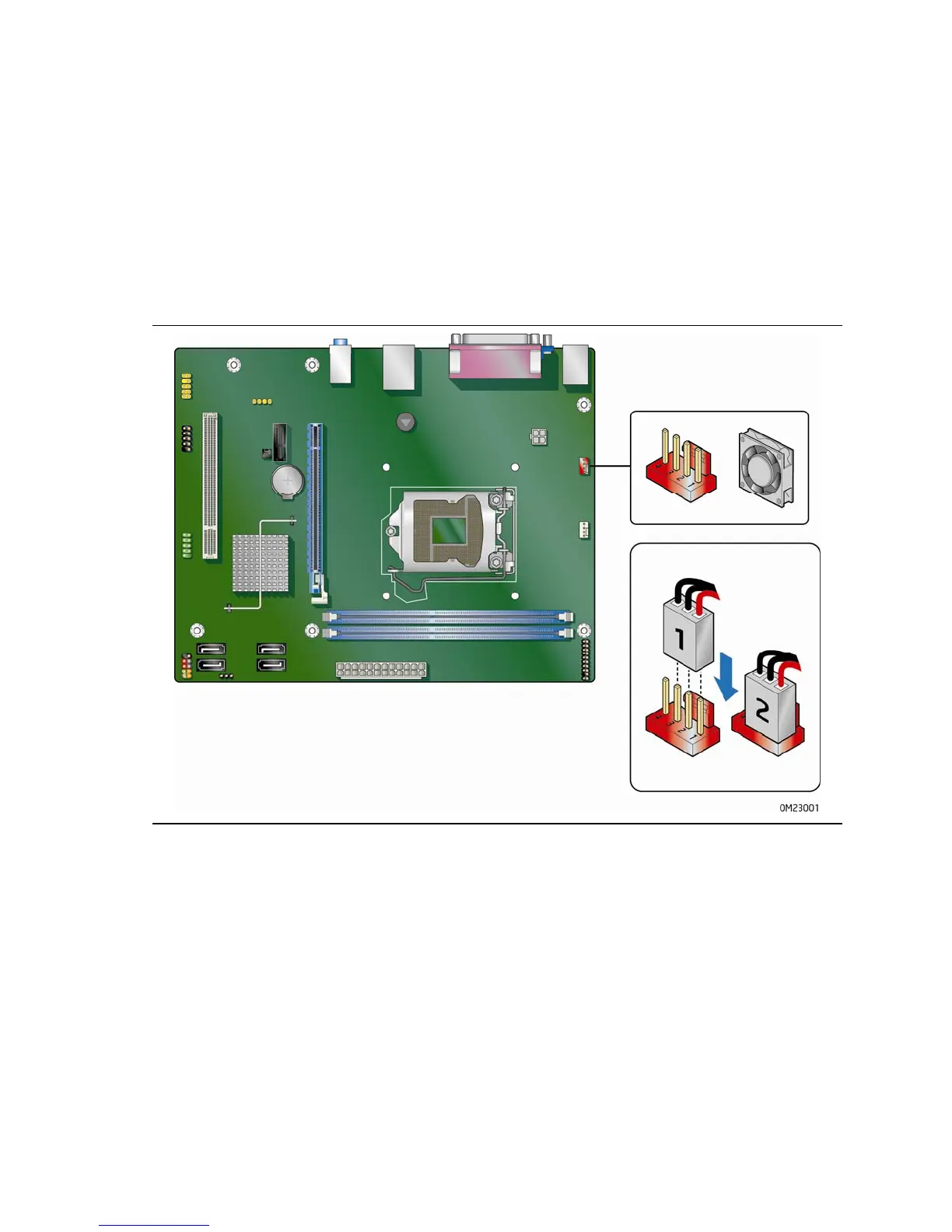 Connect chassis fan cables to the chassis fan header on the Desktop Board. Figure 20