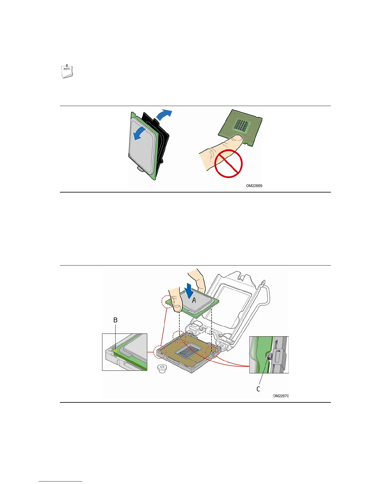 socket (Figure 9, C). Lower the processor straight down without tilting or sliding it