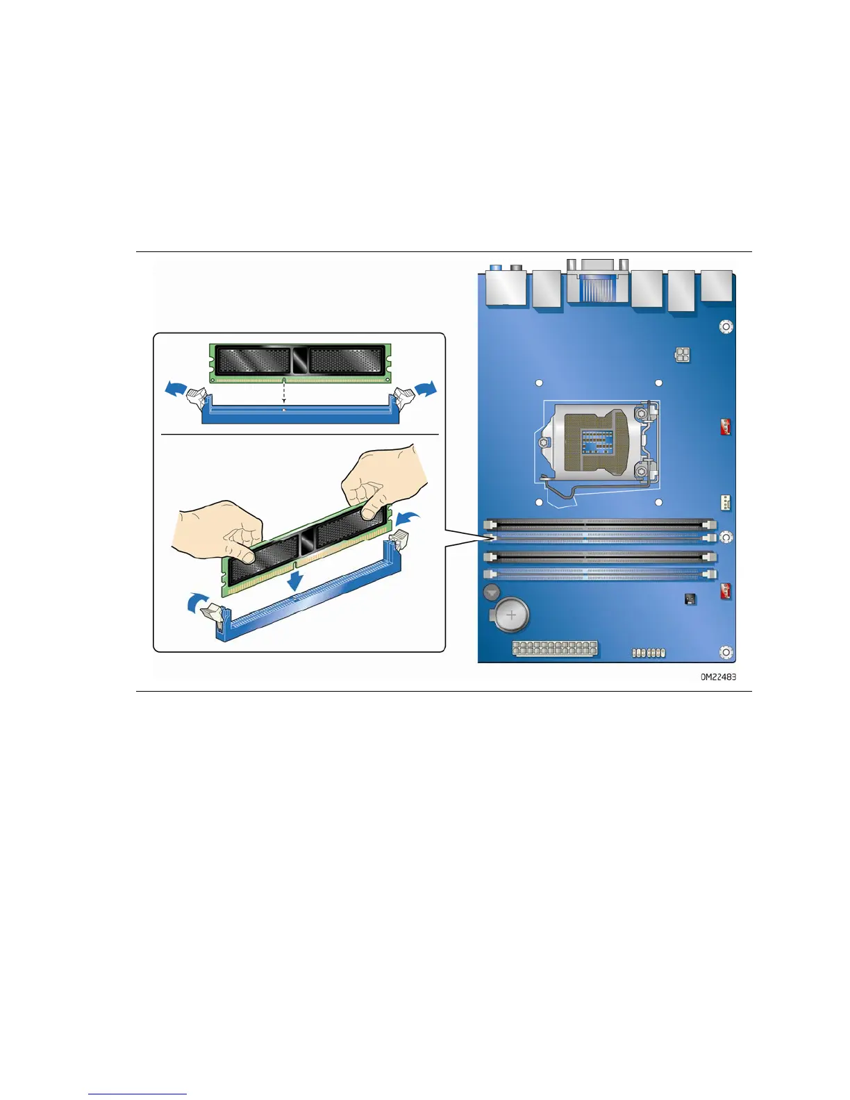 e bottom edge of the DIMM into the socket.