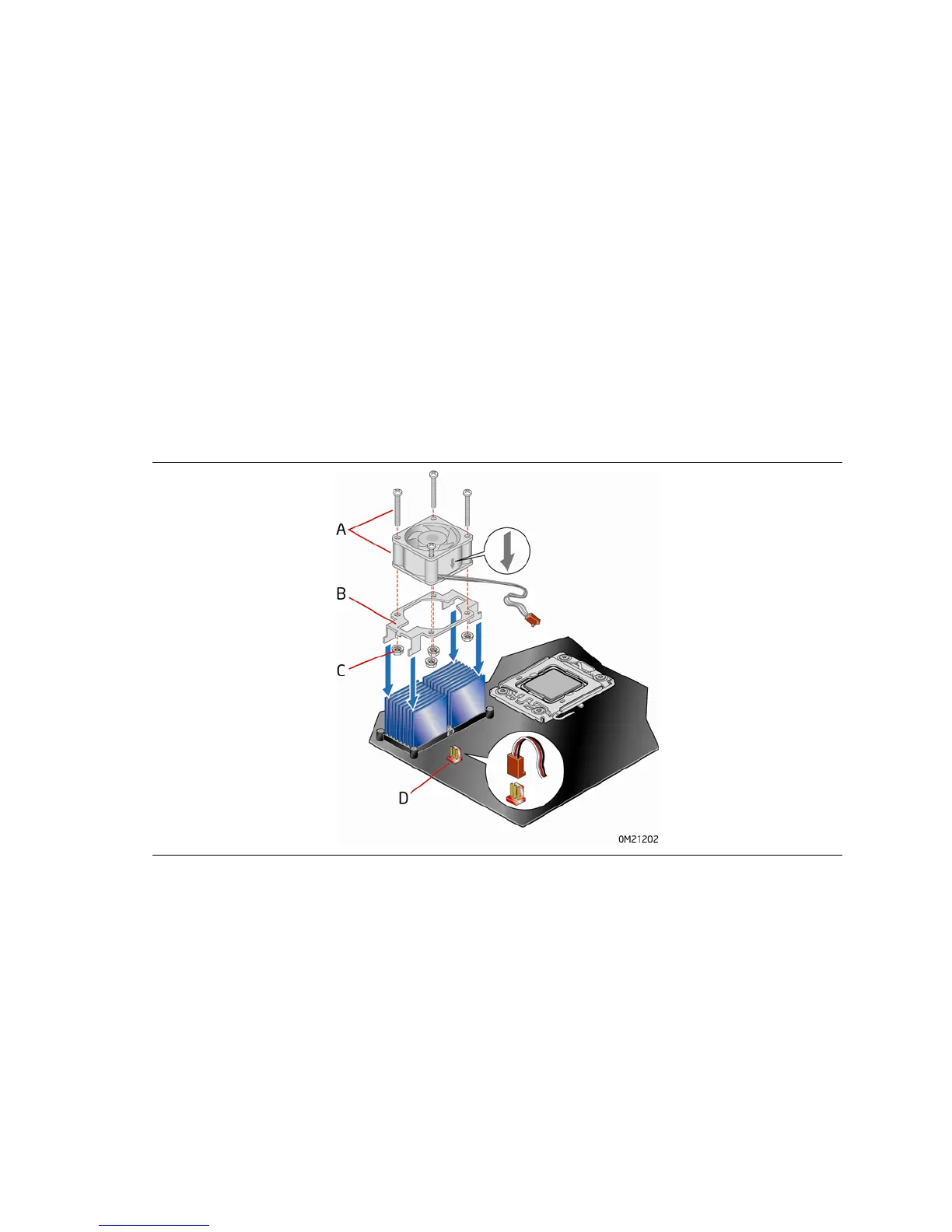 3. Attach the fan power connector to the IOH fan header (Figure 17, D).