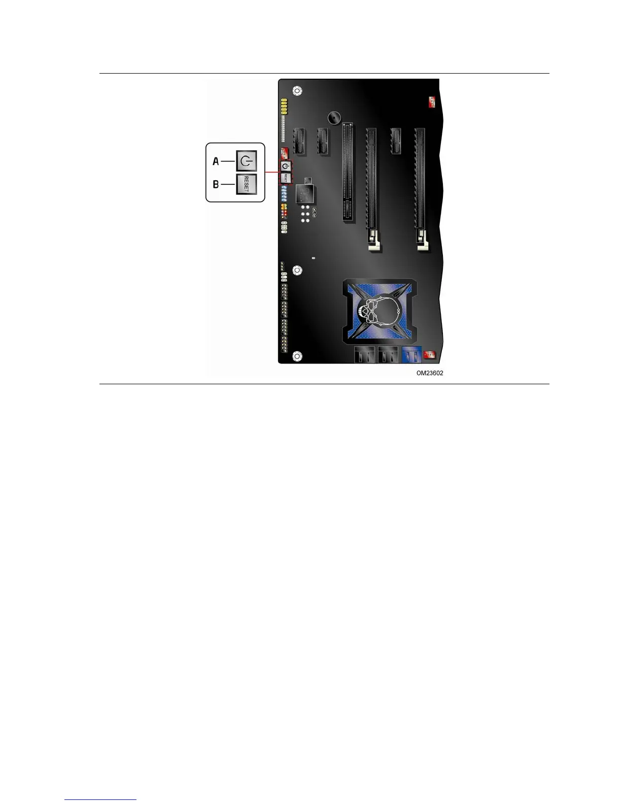 The reset button switch (see Figure 6, B) can be used to reset the desktop board. This