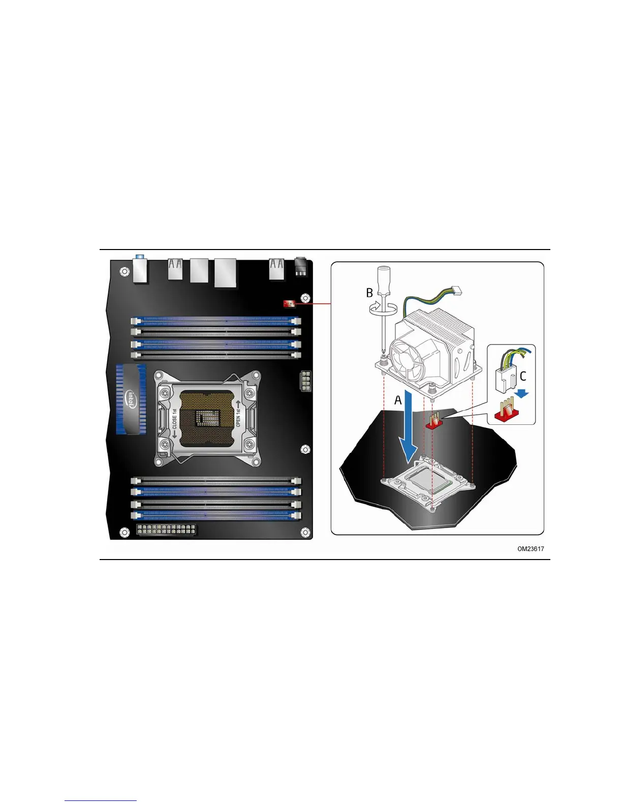 Figure 14. Installing a Fan Heat Sink and Connecting the Cable to the