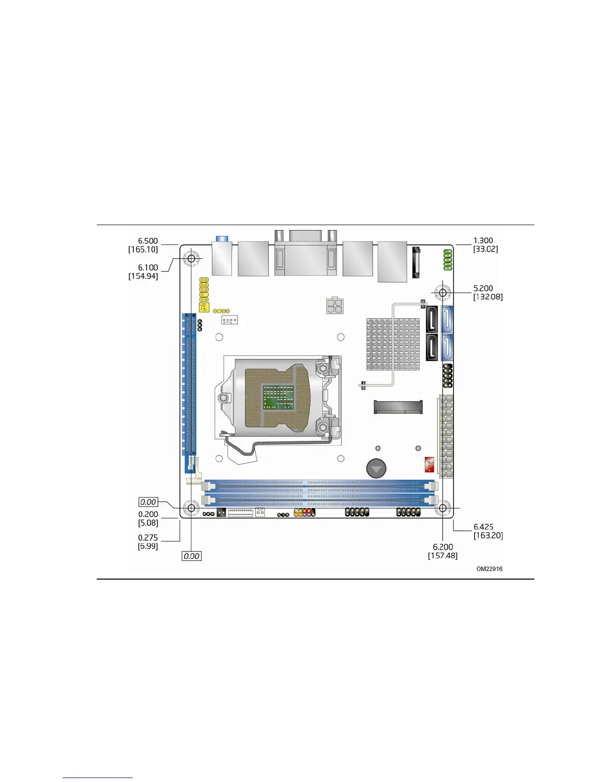 the mechanical form factor for the board. Dimensions are given in inches