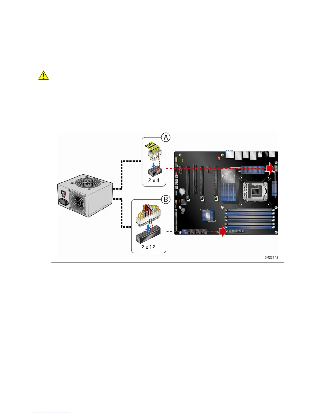 nect the main power supply cable to the 2 x 12 pin connector (Figure 26, B).