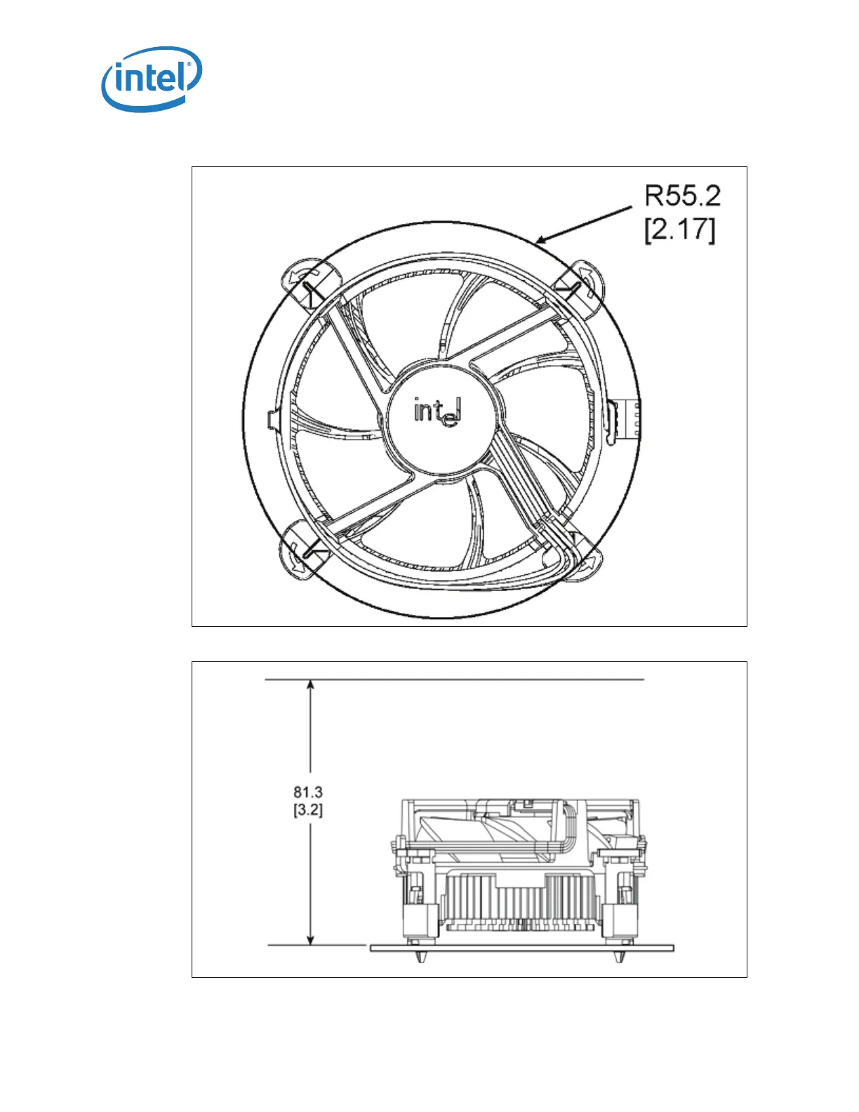 Intel Core i7-800 - Boxed Processor Fan Heatsink Airspace Keepout Requirements (Top View); Boxed Processor Fan Heatsink Airspace Keepout Requirements (Side View)
