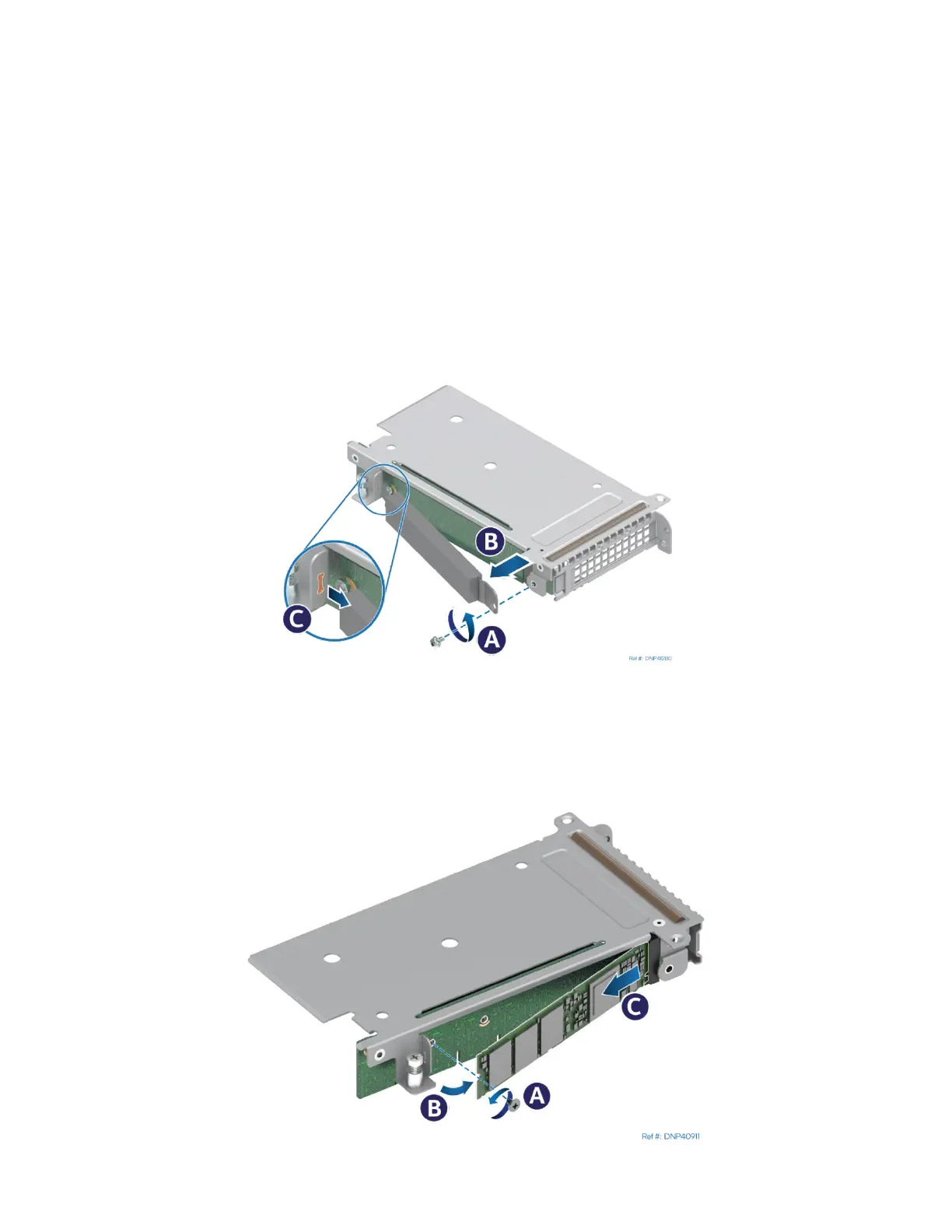 Before following steps in this section, remove the riser assembly that the M.2 SSD is attached to (see Section