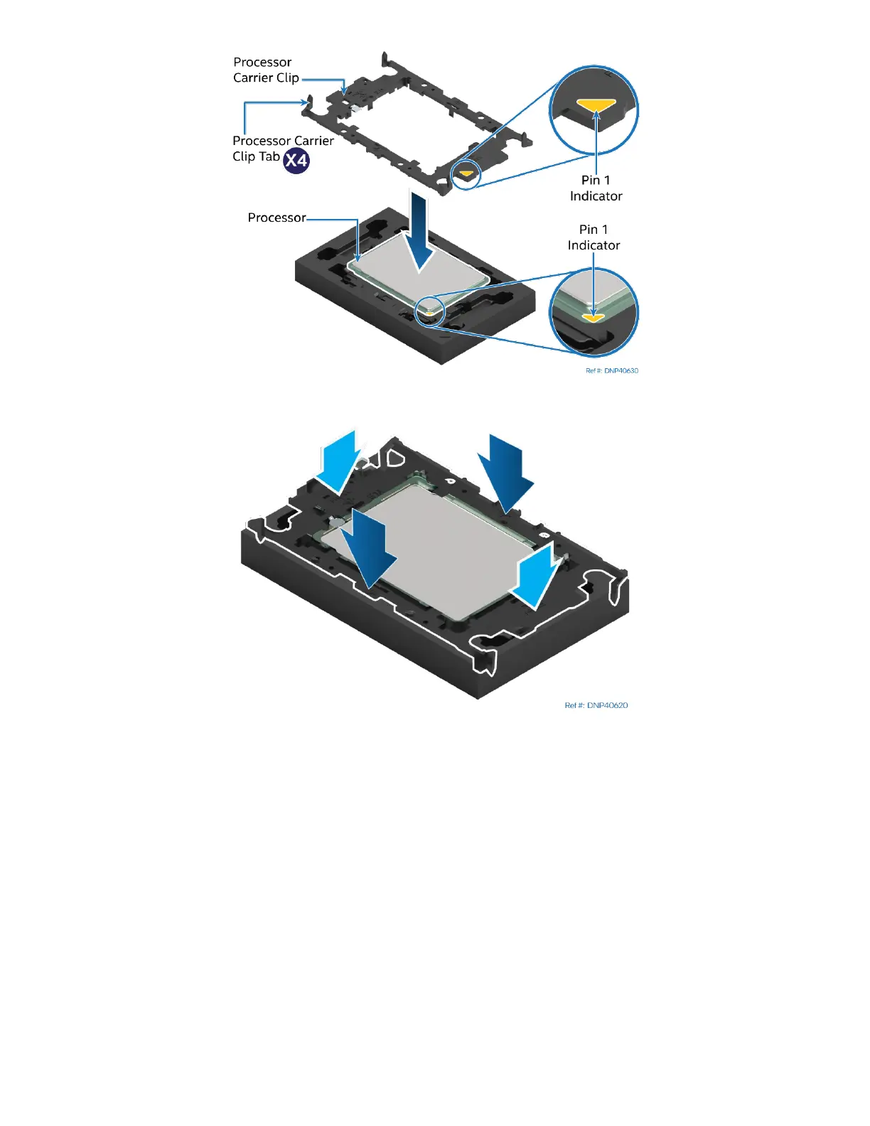 1. Align the Pin 1 indicator on the processor carrier clip with the Pin 1 indicator of the processor.