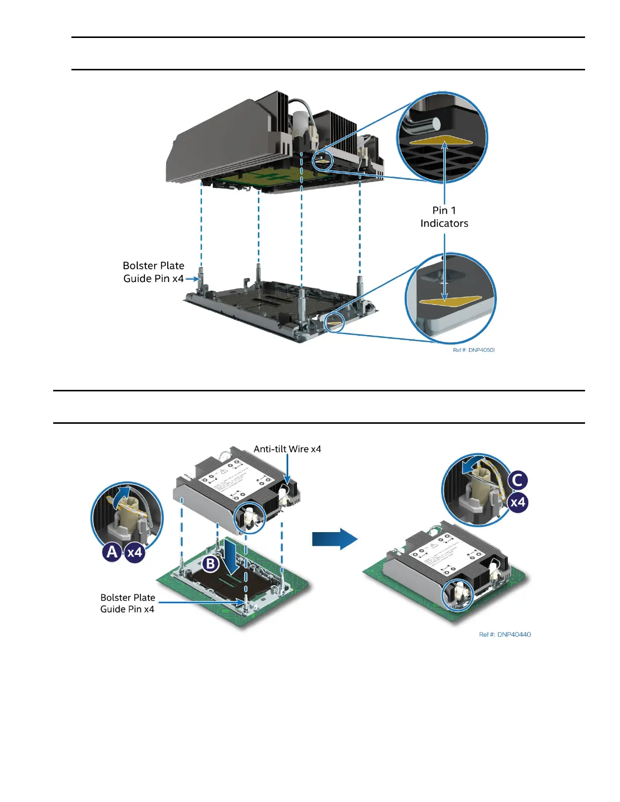 7. Set all four anti-tilt wires on the heat sink to the outward position (see Letter C).