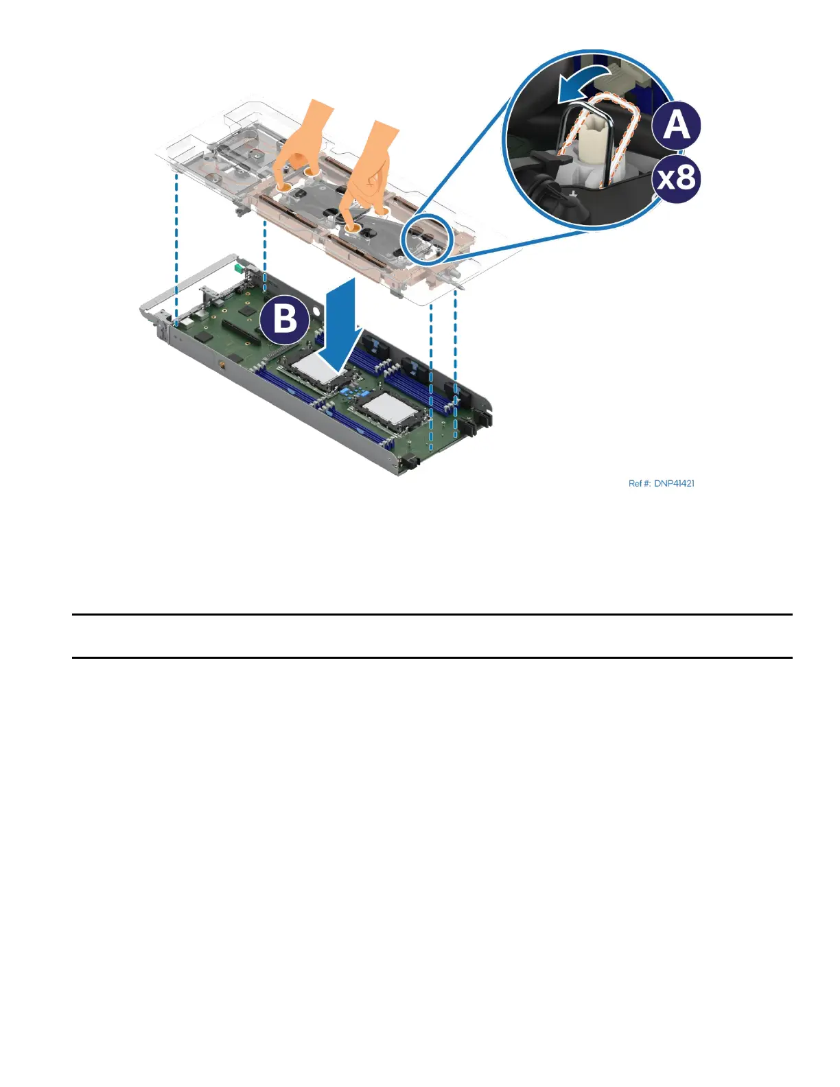 ensuring that the processor cold plates are properly aligned with the bolster plate’s alignment pins.