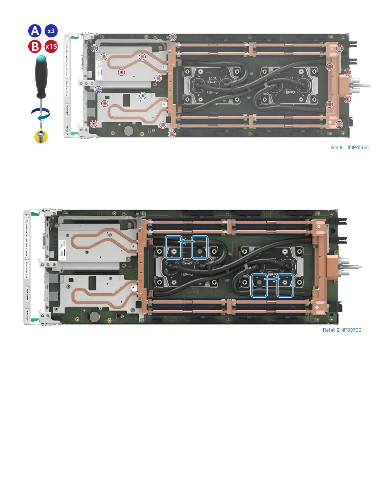 13. If needed, adjust the position of the ties securing tubes to the cold plates to ensure they do not cover