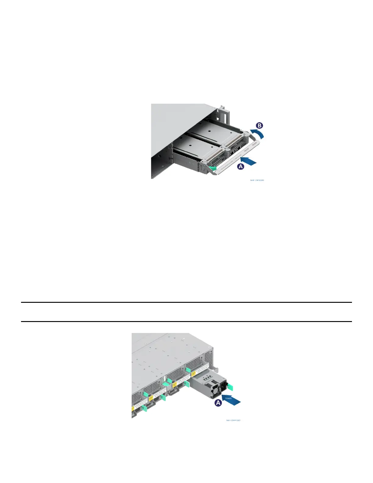 1. Insert the power supply module into the system fan assembly (see Letter A).