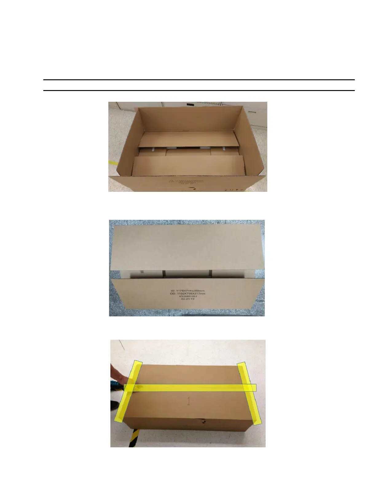 Note: By design, the long flaps do not meet. Do not tape inner box flaps.