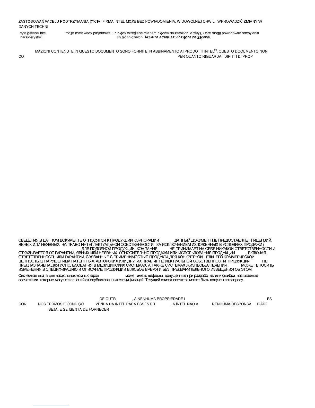 NÃO SÃO DESTINADOS AO USO EM APLICAÇÕES MÉDICAS, DE SALVAMENTO OU SUSTENTO DA VIDA. A INTEL PODE FAZER MODIFICAÇÕES NAS