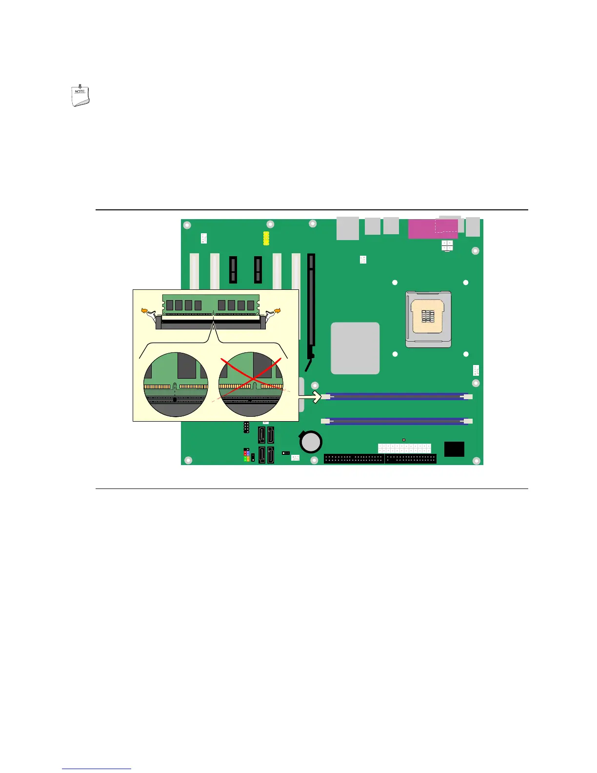 7. Position the DIMM above the socket. Align the small notch at the bottom edge of the DIMM