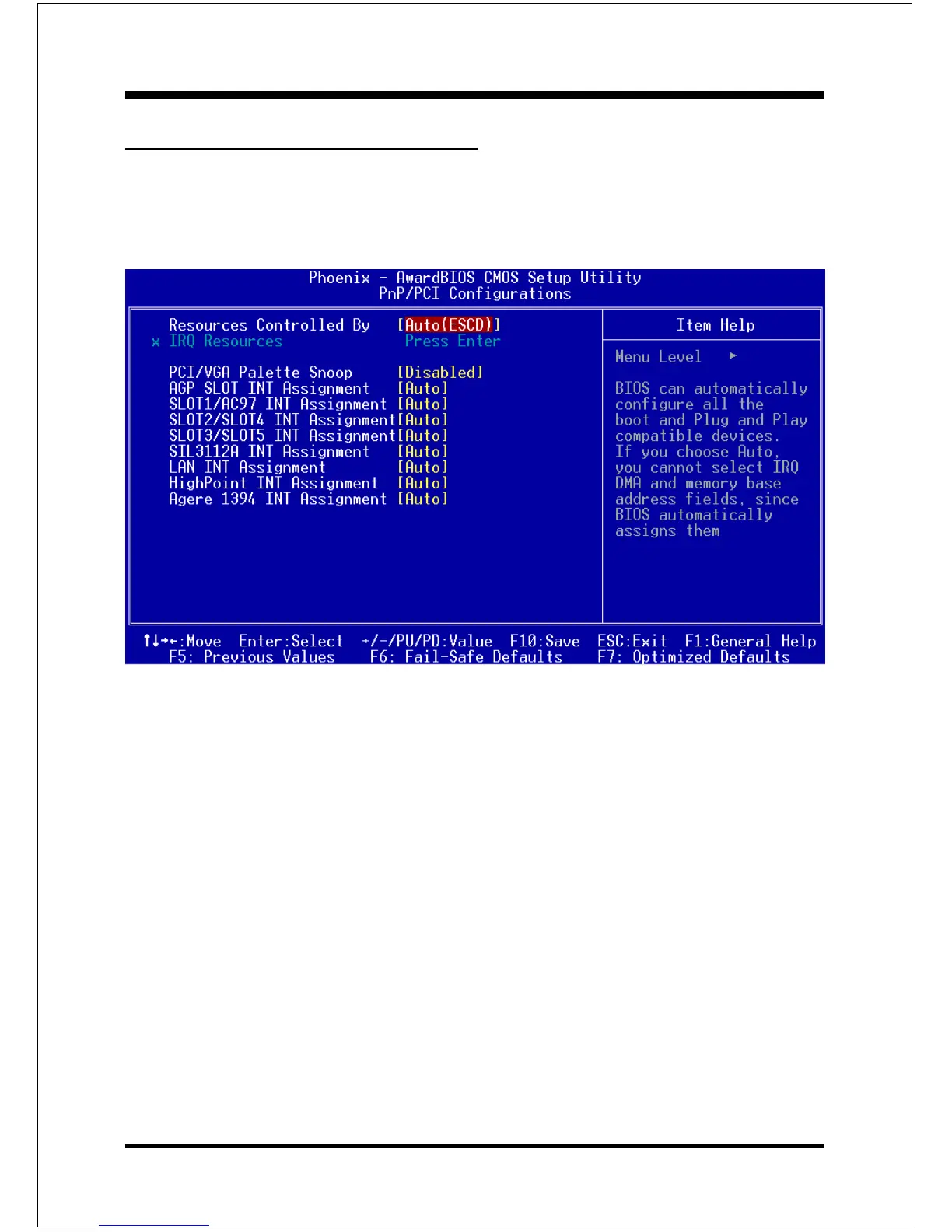 Manual: PNP Cards resources are controlled manually. The IRQ Resources field