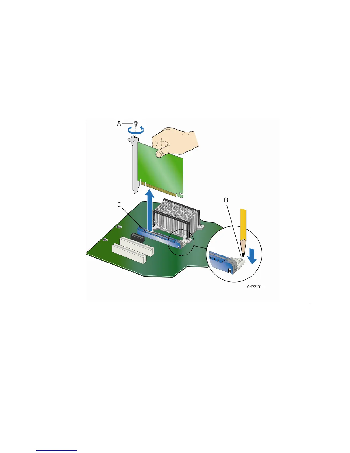 (Figure 17, B) in the notch. This will release the card from the connector (C).