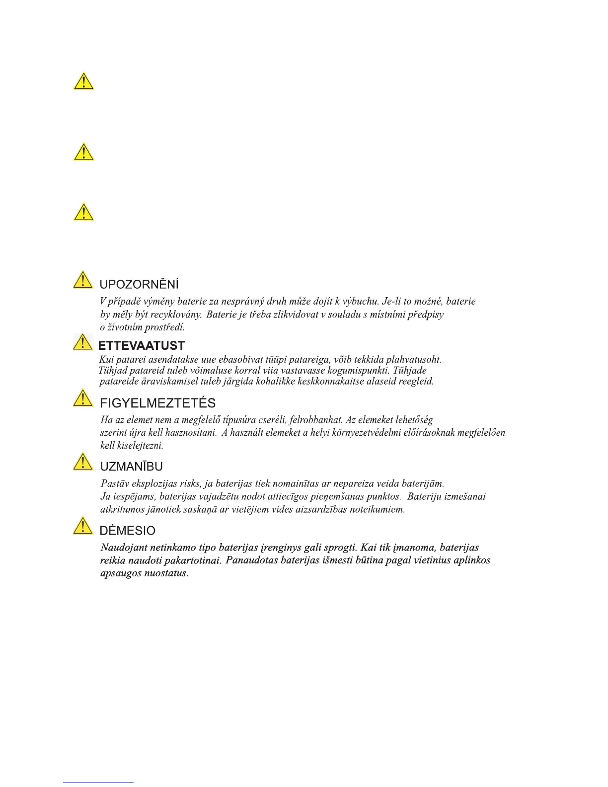 如果更換的電池類型不正確,可能會有爆炸的危險。請盡可能將電池送至回收處。請依照當地的環保