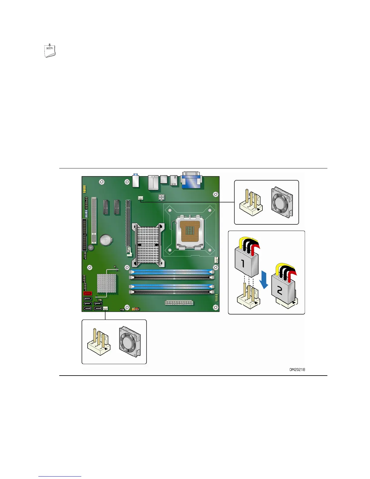 Connect chassis fan cables to the 3-pin chassis fan headers on the Desktop Board.